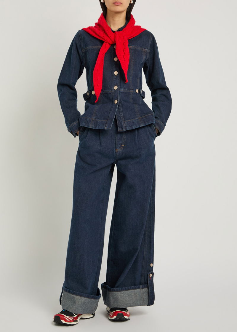 'Small and slow' London brand, Damson Madder's clothing is characterised by relaxed fits, feminine details and playful prints. Denim meets with ruffles, bows and embroidery, while cargo trousers might be rendered in an irreverent leopard print. Along with midi dresses, floral quilted jackets and oversized collar blouses, its gilets and long skirts are bestsellers.
