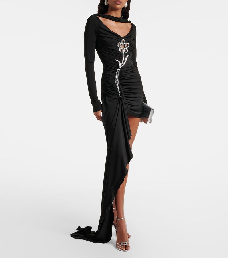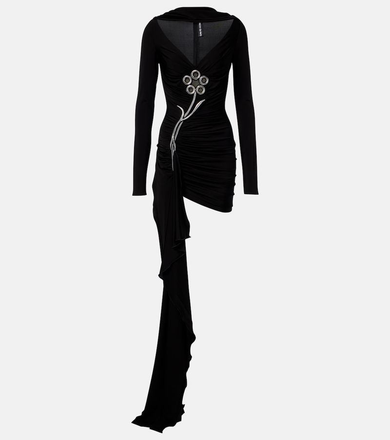 Embellished Draped Jersey Minidress