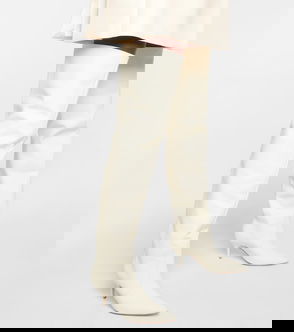 Real Leather Knee High Heeled Boots With Suede Lining In Black