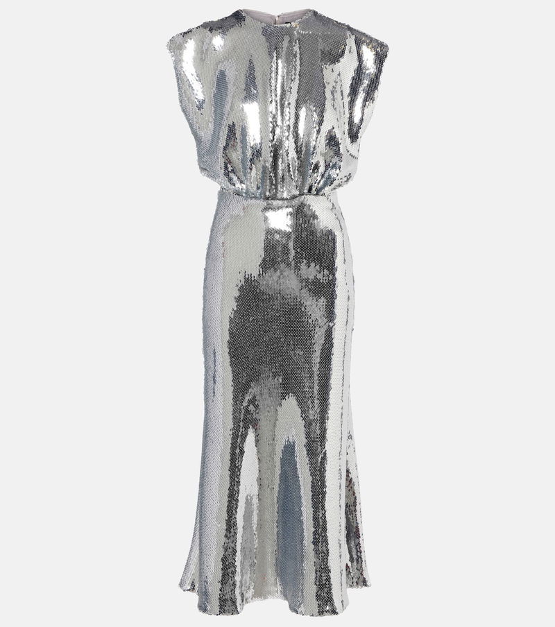 David Koma's glamorous styles are the key to making an entrance when it matters the most. This midi dress features all-over silver-toned sequins and a gathered waistline for a ballooning effect on the bodice.
