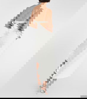 Ruffle-trimmed Asymmetrical Cutout Midi Dress