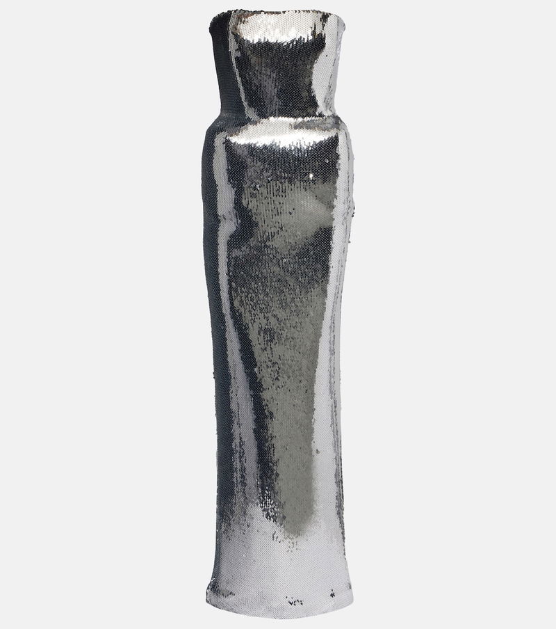 David Koma's glamorous styles are the key to making an entrance when it matters the most. Fully adorned with shimmering sequins, this bustier gown features a strapless silhouette and padding at the hips for impact.