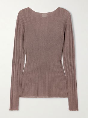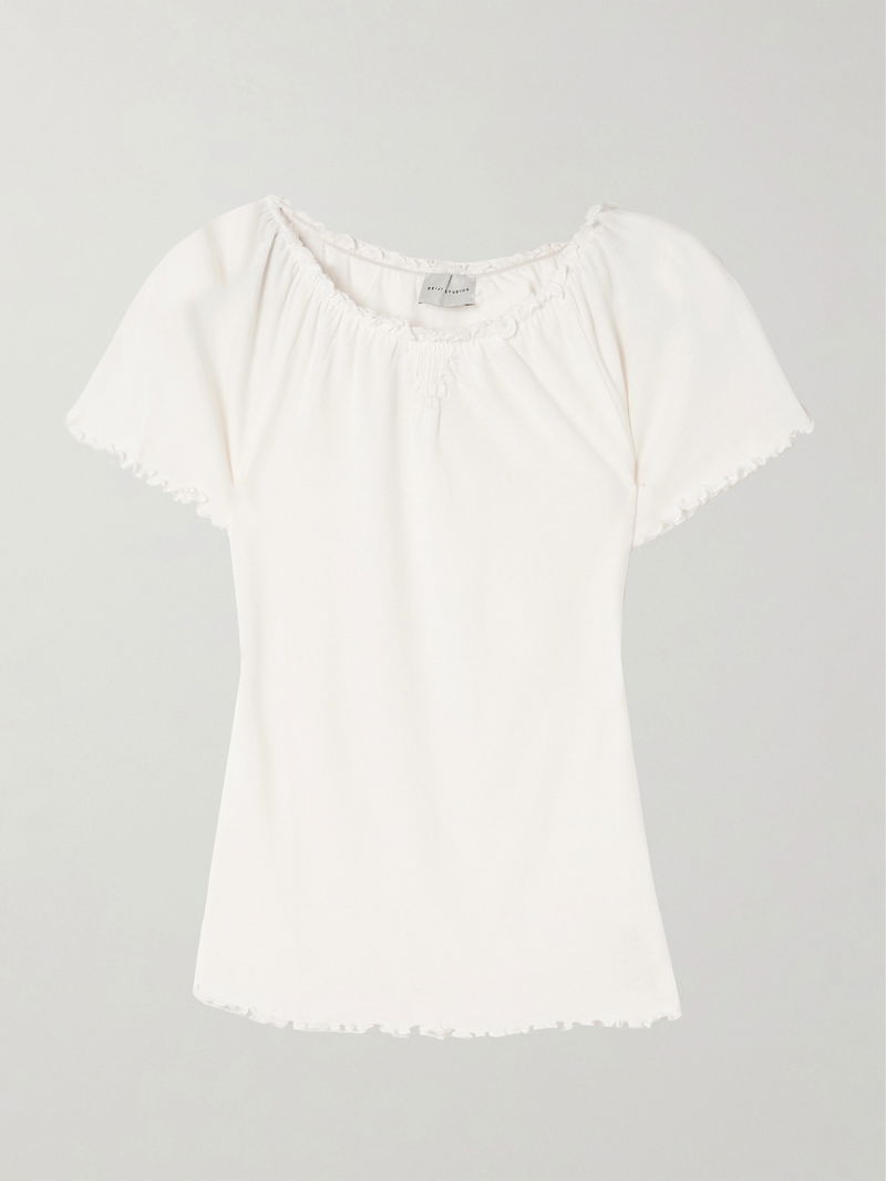 Flounce Shirred Cotton And Wool-blend Top