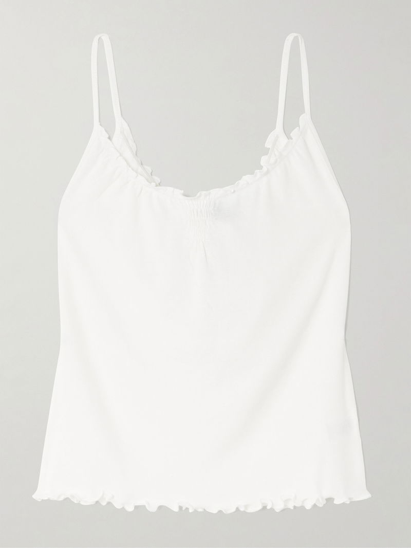 Deiji Studios designs wardrobe basics with an understated sense of femininity. This 'Flounce' tank is made from a soft cotton and wool-blend to skim your frame and is finished with baby lock edges and a shirred panel below the neckline. Wear yours with anything from jeans to slip skirts.
