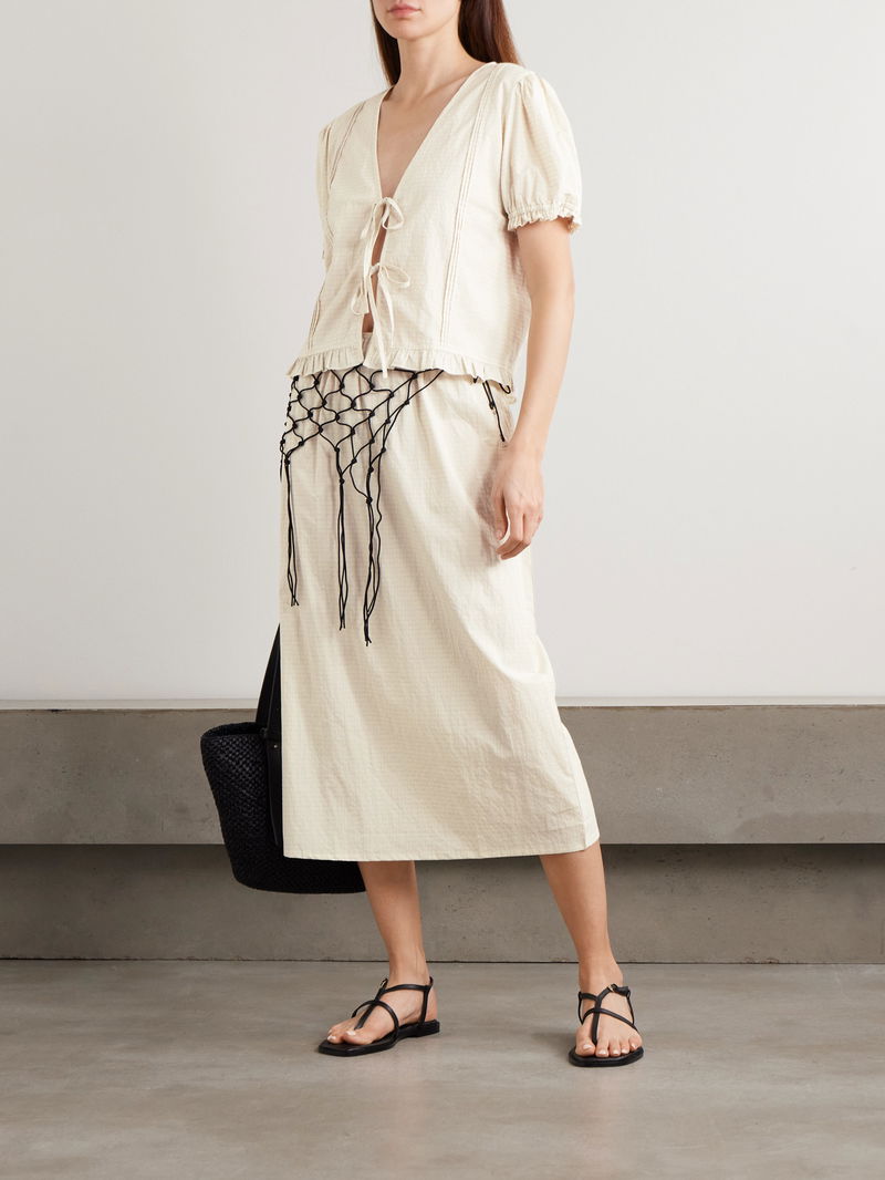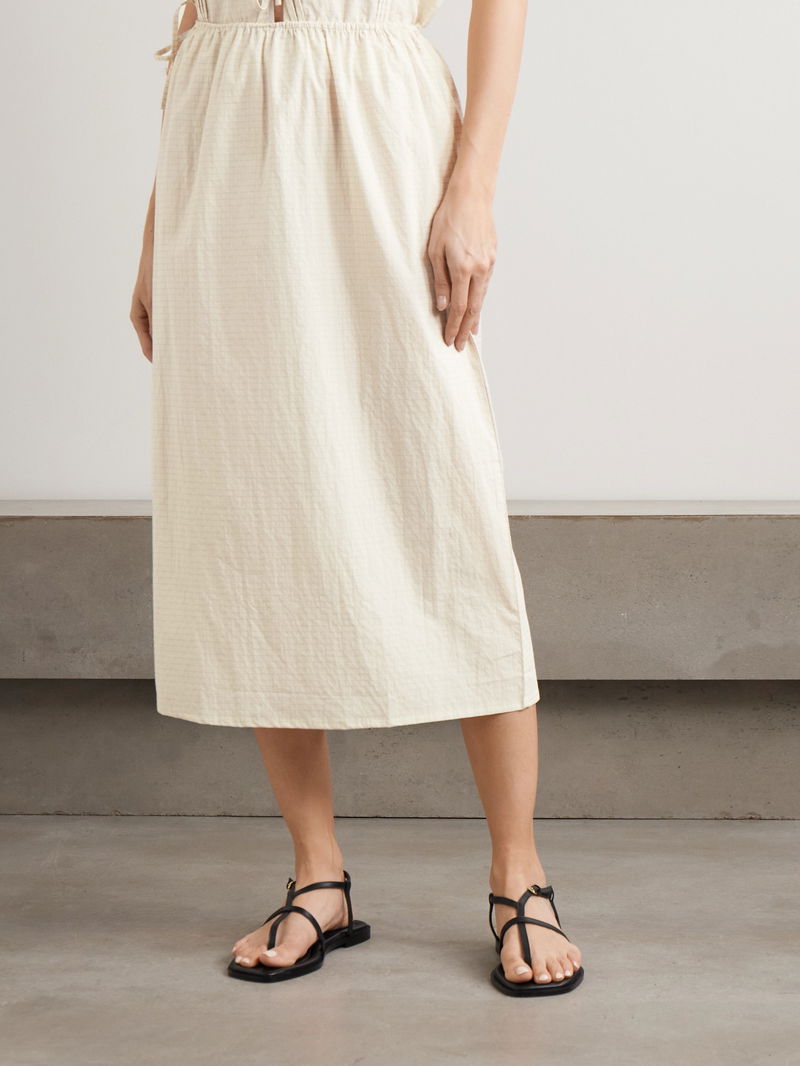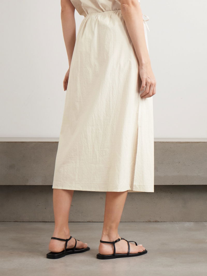 Deiji Studios' 'Mid Day' skirt is easy and elegant. Cut from airy organic cotton-poplin, it's woven with subtle checks and has a gentle A-line shape with a side split for comfortable movement.