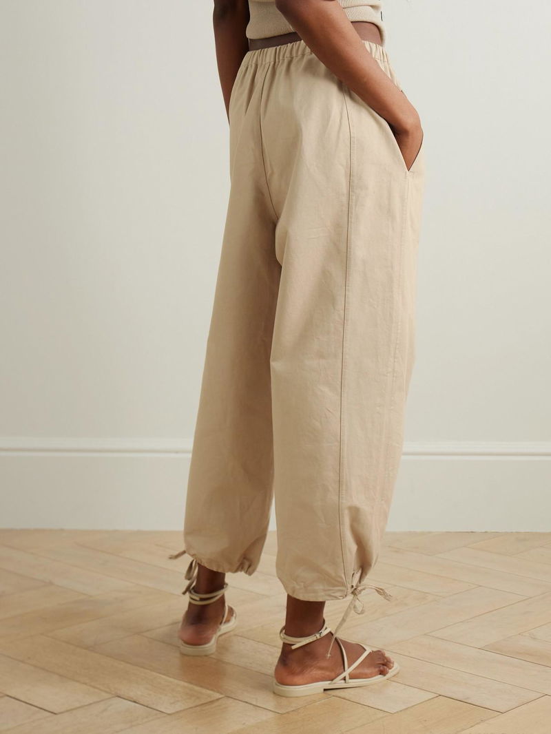 Tie-Detailed Slub Cotton Tapered Pants