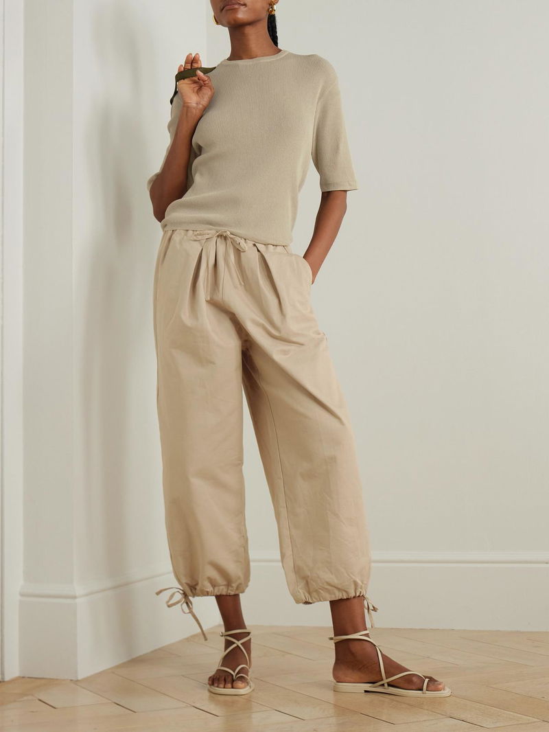 Deiji Studios' pants have adjustable drawstrings at the waist and hems - adjust yours to slightly cinch the shape. They're cut from breathable slub cotton and have tapered legs.