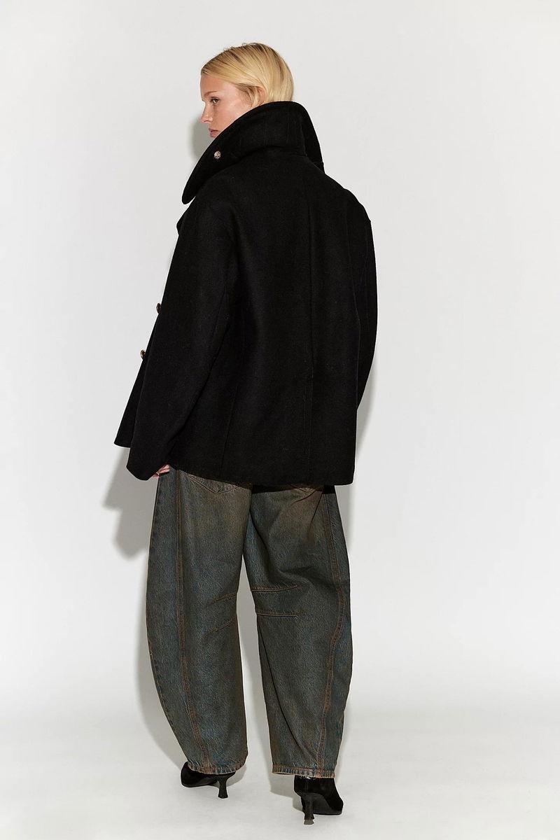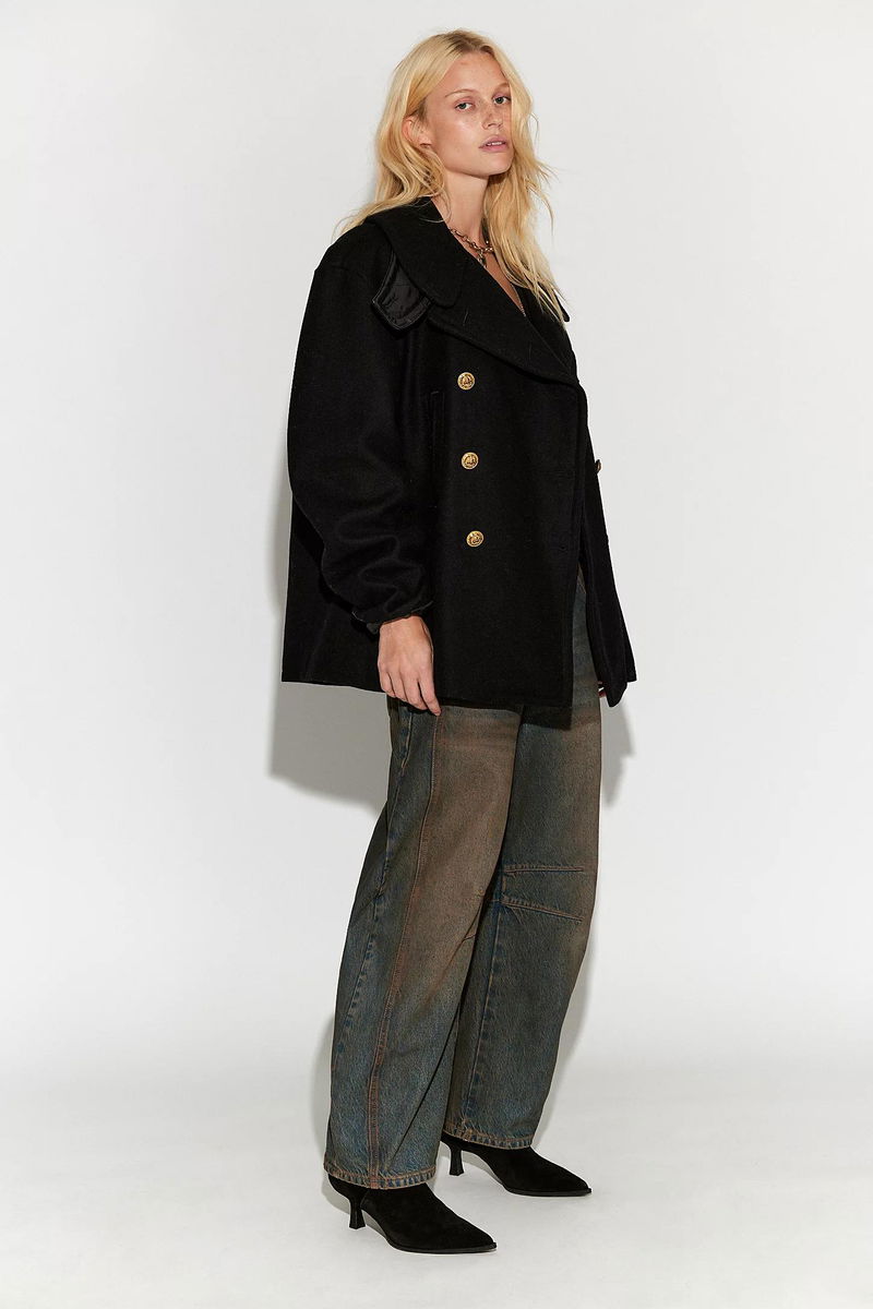 A contemporary twist on a timeless style, this peacoat from Denimist features an oversized, double-breasted design, warm wool-blend fabrication, and gold-toned hardware for a classic touch.