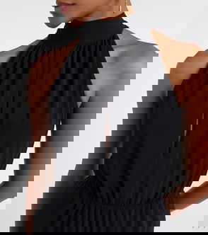 The Talia jumpsuit from Diane von Furstenberg is made from a soft and pliable jersey. The one-shoulder design comes with a draping detail on one hip, a cinched waist, and a billowing single sleeve.