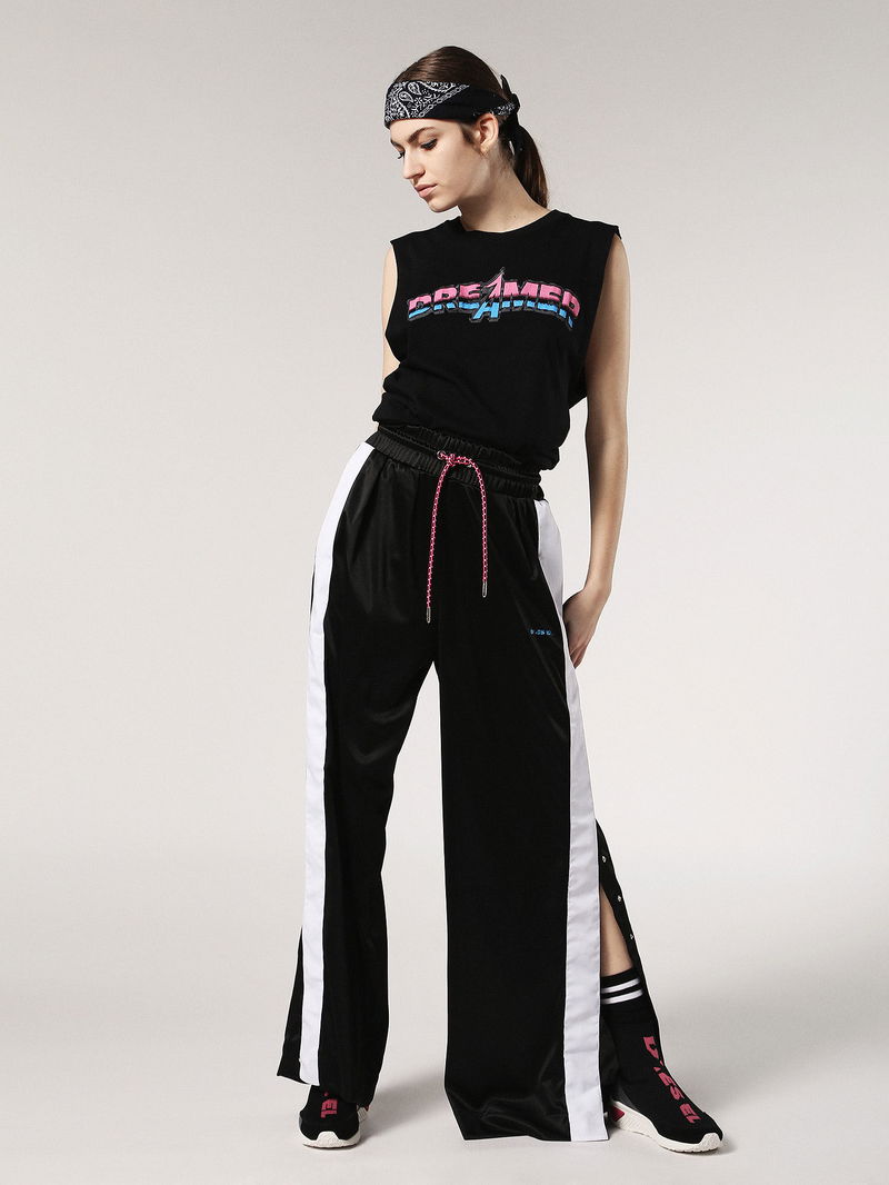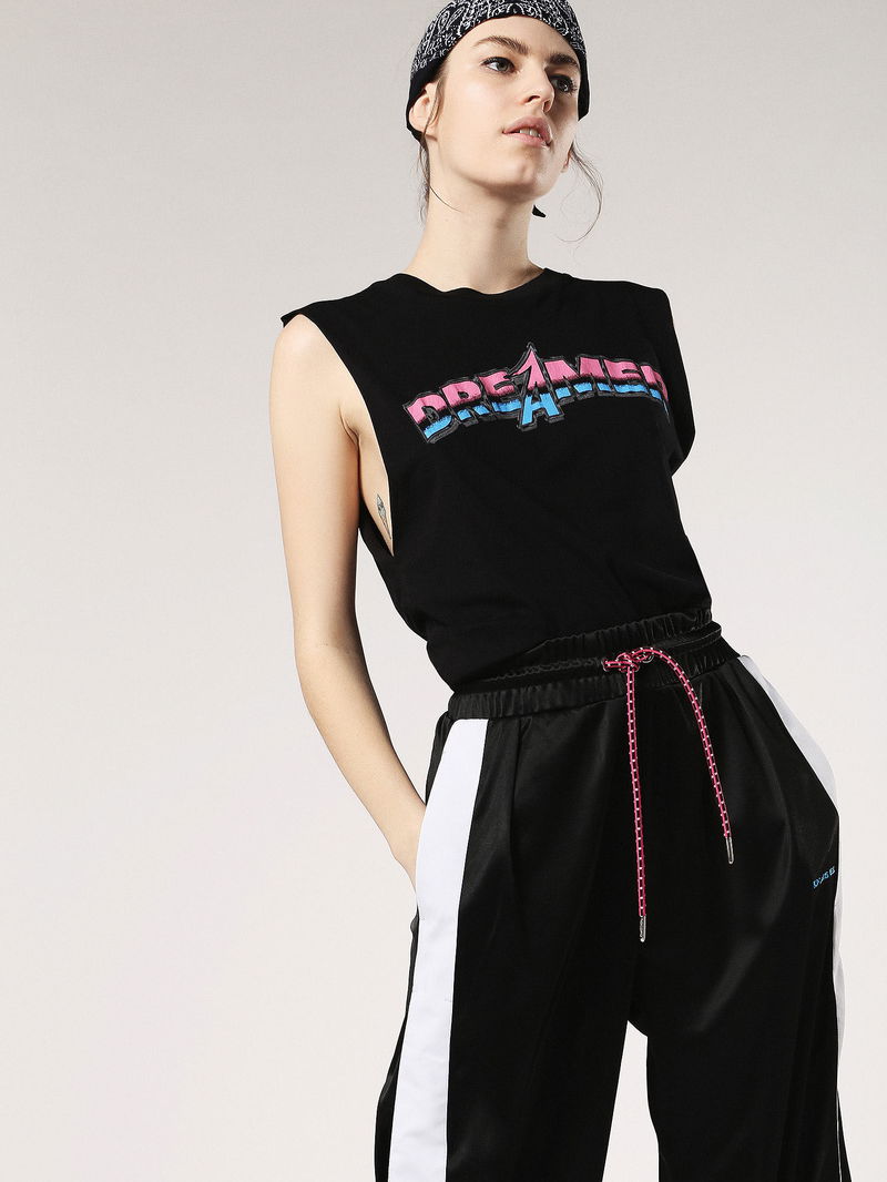 This sleeveless T-shirt is crafted from soft cotton jersey and cut for a relaxed silhouette. It's embellished with contrasting DREAMER lettering in a three-colour design on the front, while the back features a colourful print of the open road with the Diesel logo. The crew neck is ribbed to enhance the casual feel.