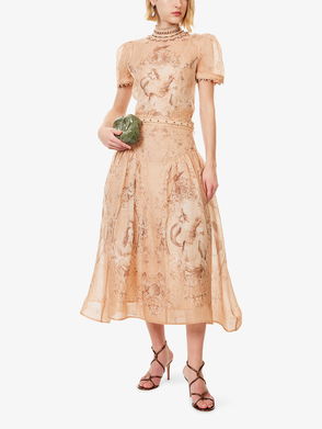 DÔEN's 'Elowen' skirt is cut from silk-charmeuse that drapes languidly over your frame. It has an elasticated waistband and is embroidered with flowers in tonal-blue threads along the midi hem.