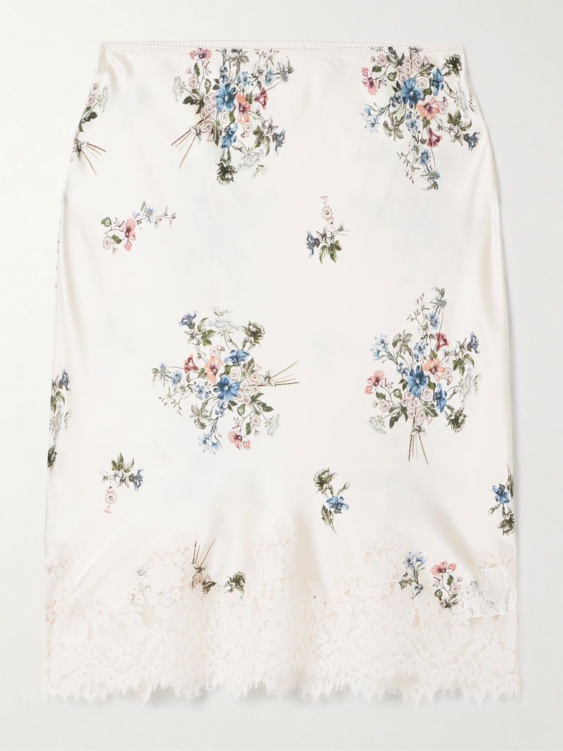 From the beautiful floral print to the lace trims, DÔEN's 'Elowette' skirt is undeniably feminine and romantic. It's made from fluid silk-satin that skims the figure and has an elasticated waist and scalloped hem.