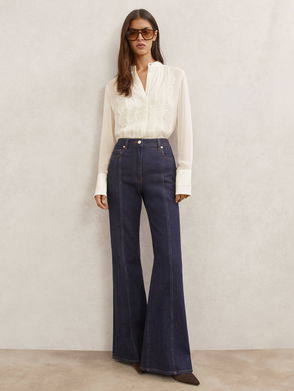 The romance of the Edwardian era inspires DÔEN’s ‘Henri’ blouse. Cut from delicate lace, it has pintucked puffed sleeves and fluttery ruffles tracing the neckline. Underpin yours with a tonal bralette to temper the sheerness.