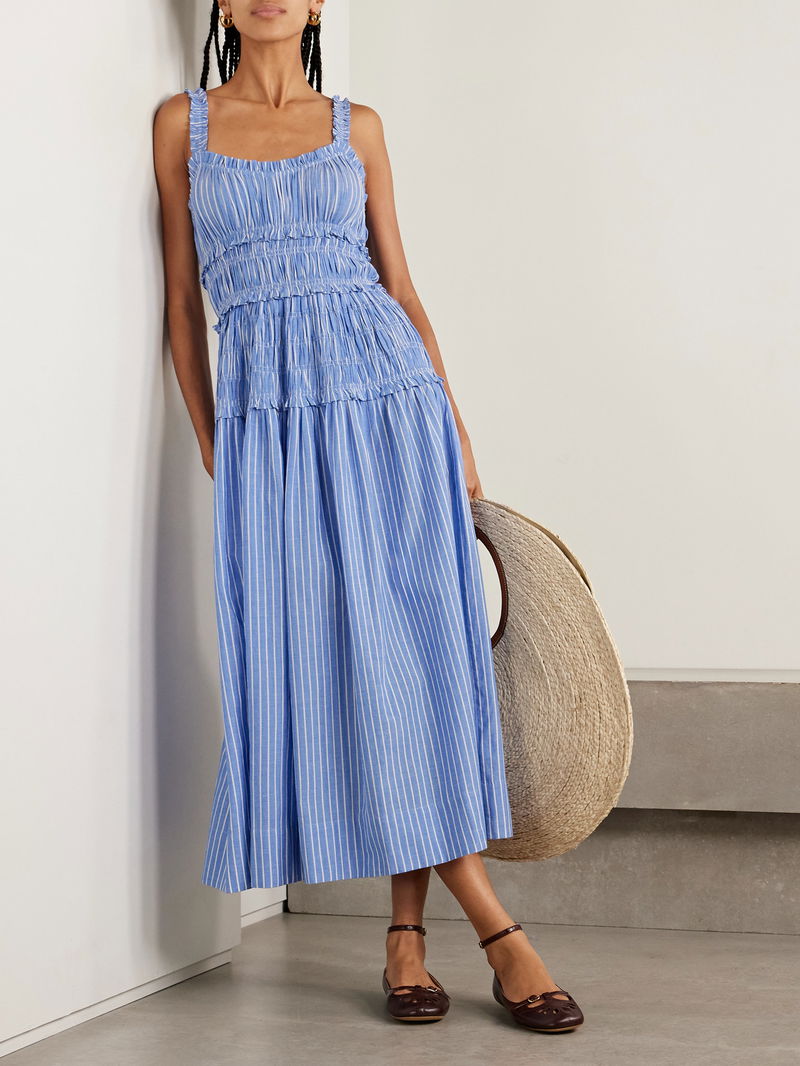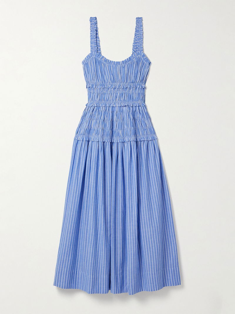 Marianne Shirred Striped Cotton-poplin Midi Dress
