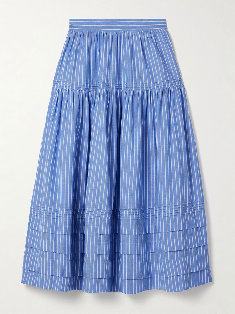 DÔEN's 'Sebastiane' midi skirt is made from organic cotton-poplin that's gathered along each tier to create pretty volume. It's designed to sit at your natural waist and has a vertical stripe motif. Wear it with flat sandals or heels, depending on the occasion.