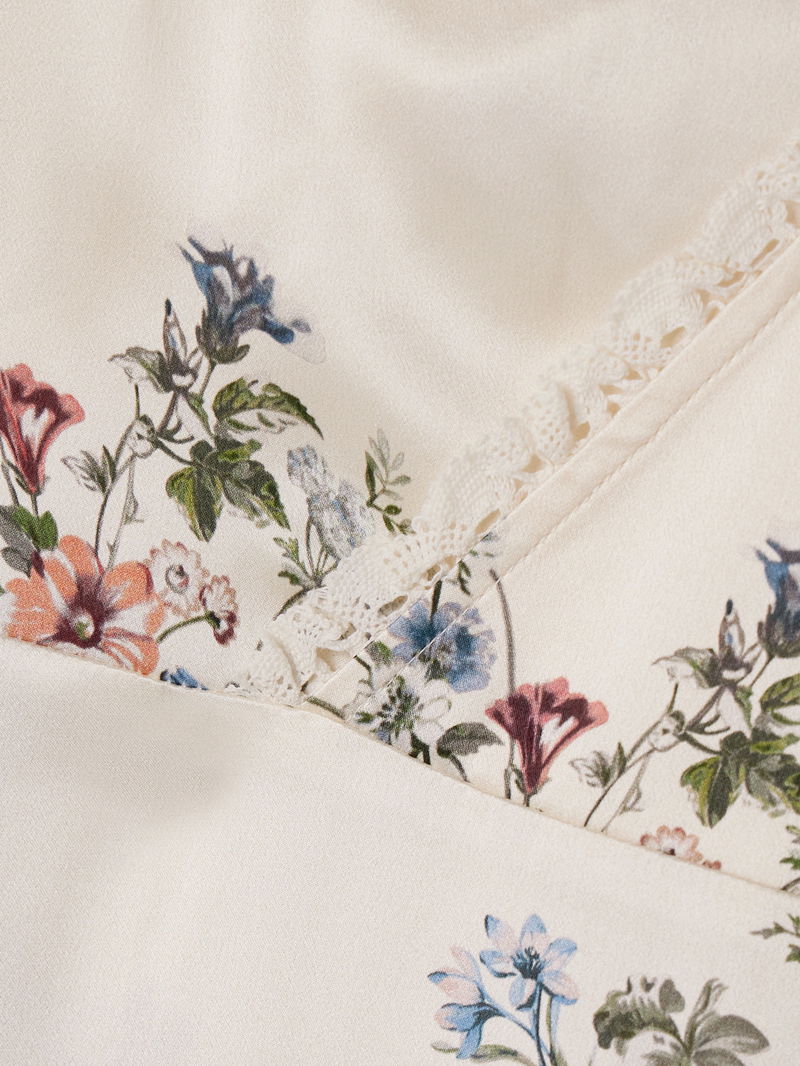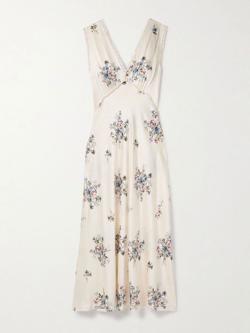 DÔEN's 'Tahlia' midi dress is printed with romantic vintage-inspired blooms and trimmed with intricate lace. Cut from lustrous silk-charmeuse, it gathers gently at the bodice and has a dramatic plunging V-neckline. Use the ties at the back to cinch the shape.