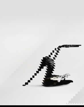 Pad around the house with an air of opulence while wearing the white Bianca sandals from Dolce & Gabbana. Made from Taormina lace, this pair is defined by sparkling crystal embellishments. Style with a feather-trimmed house coat to add a dose of drama to your evenings.