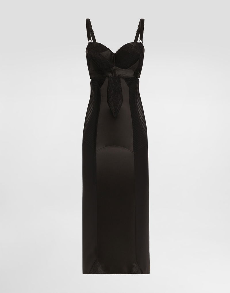 Calf-length Satin And Lace Dress With Corset Details