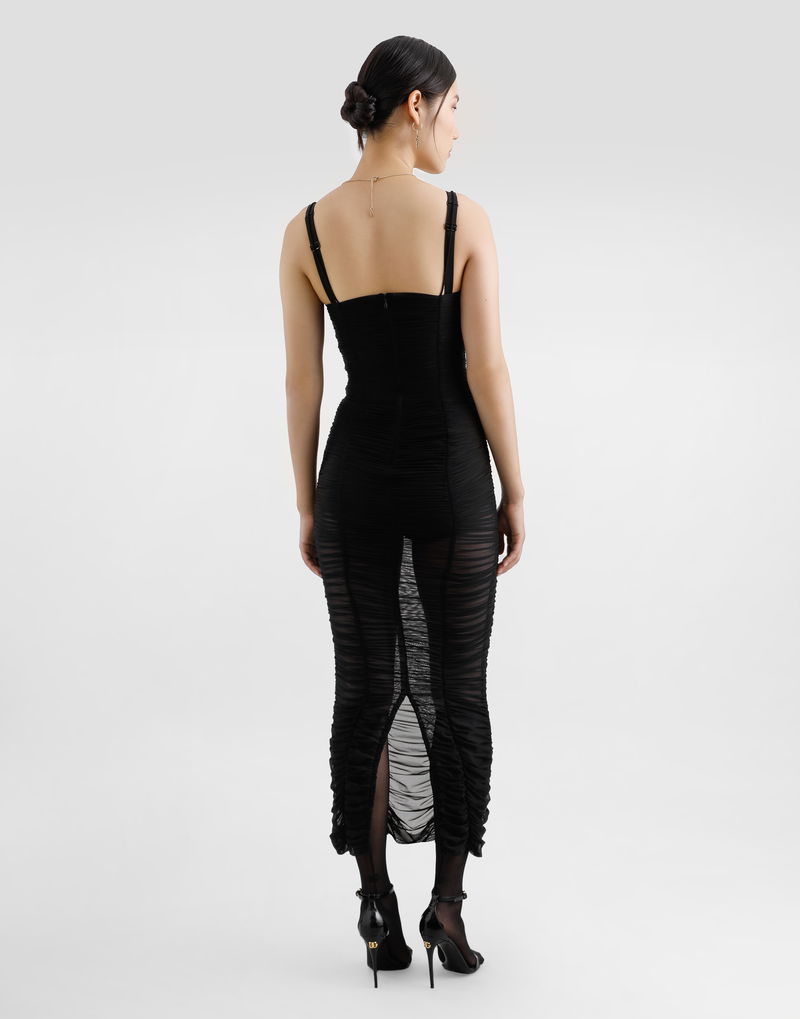 Calf-length Stretch Tulle Slip Dress