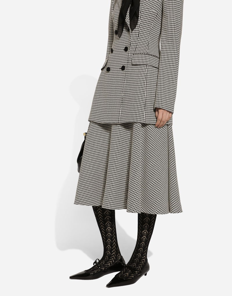 Calf-length Wool Houndstooth Circle Skirt