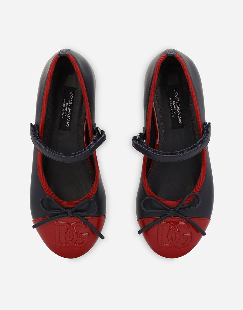 Calfskin And Patent Leather Ballet Flats With Bow Detail