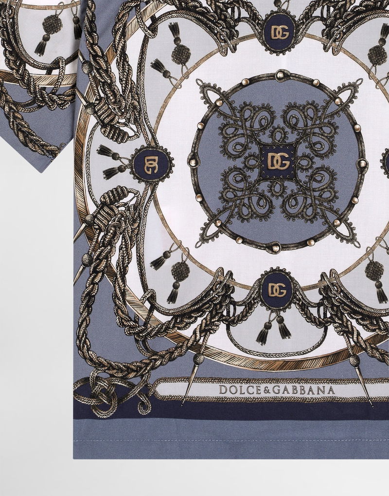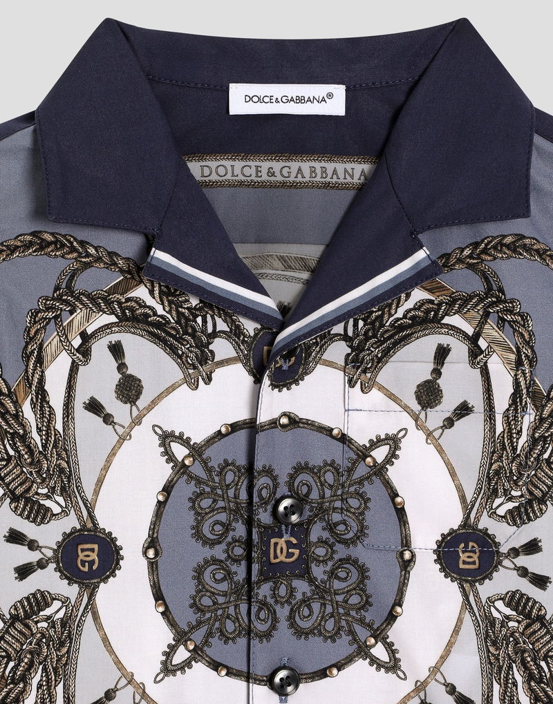 Cargo-print poplin shirt: Multi-colored Regular fit Hawaii collar shirt Left chest pocket Front button opening Short sleeves with hem Back with yoke Bottom with side slits Longer in the back than in the front Made in Italy The difference in the print placement that you may find on this product is a feature of Dolce & Gabbana’s “Handmade” pieces. A detail that makes every garment or accessory unique and exclusive.