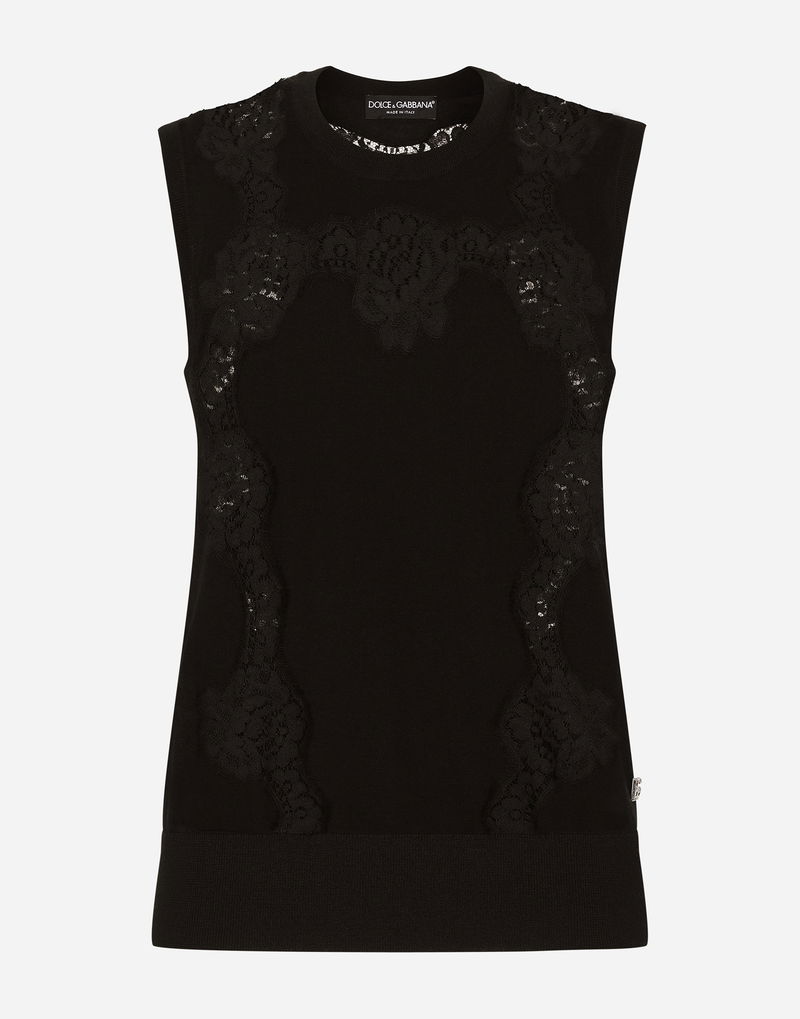 Cashmere And Silk Sweater With Lace Inlay