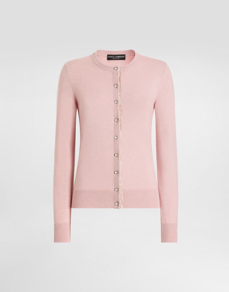 Cashmere cardigan with jewel buttons: Pink Long sleeves Length from shoulder 60 cm on size 40 IT The model is 175 cm tall and wears size 40 IT Made in Italy