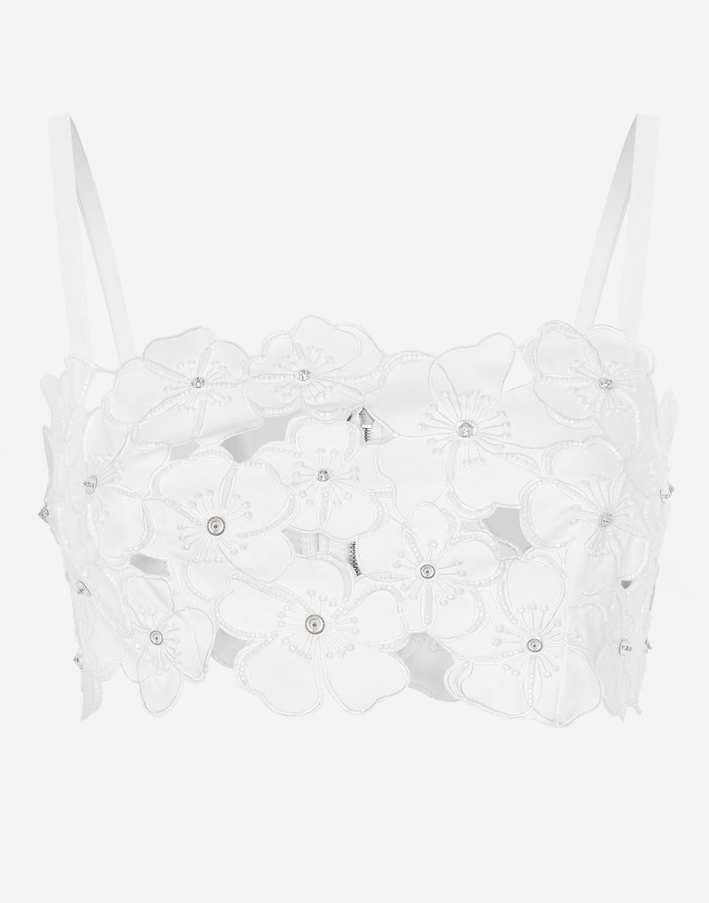 Cotton Bralette Top With Cut-out Embroidery And Rhinestone Embellishment