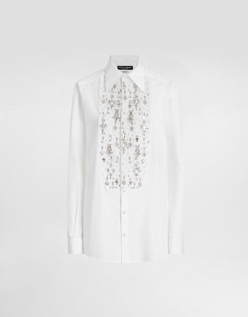 Cotton Tuxedo Shirt With Rhinestone-embroidered Shirt Front