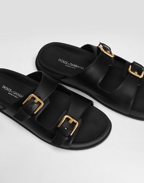 Cowhide embellished flat slippers: Multi-colored Bianca 2.0 shape construction TPU and leather outsole Texon insole Open toe leather insole customized with fire stamp with foil or film Customization with buckles Antique Latin gold plating Item equipped with a black cotton bag and a black embossed box.