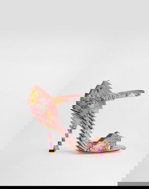 Cowhide sandals with embellishments: Multi-colored Keira shape Leather outsole with DG metal logo Texon insole Leather open toe insole customized with fire stamp with foil or film Customized with buckles Antique Latin gold plating Heel height 60 mm Item equipped with black cotton bag and black embossed box.