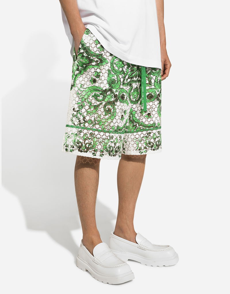 Crochet Lace Jogging Shorts With Majolica Print