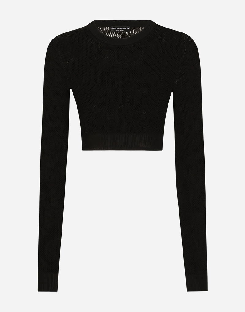 Cropped Mesh-stitch Viscose Sweater With Jacquard DG Logo