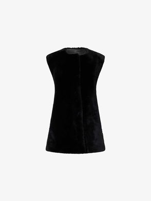 This shearling vest embodies Dolce&Gabbana's vision for striking looks. The piece is cut to a cropped silhouette and boasts practical side slit pockets, a soft lining, and a concealed front closure.