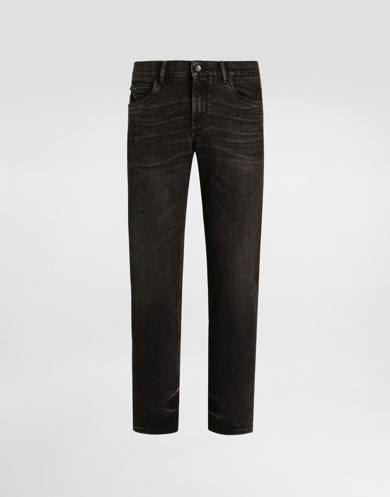 Denim trousers with DG patch: Multi-colored DG leather patch on right back pocket.
