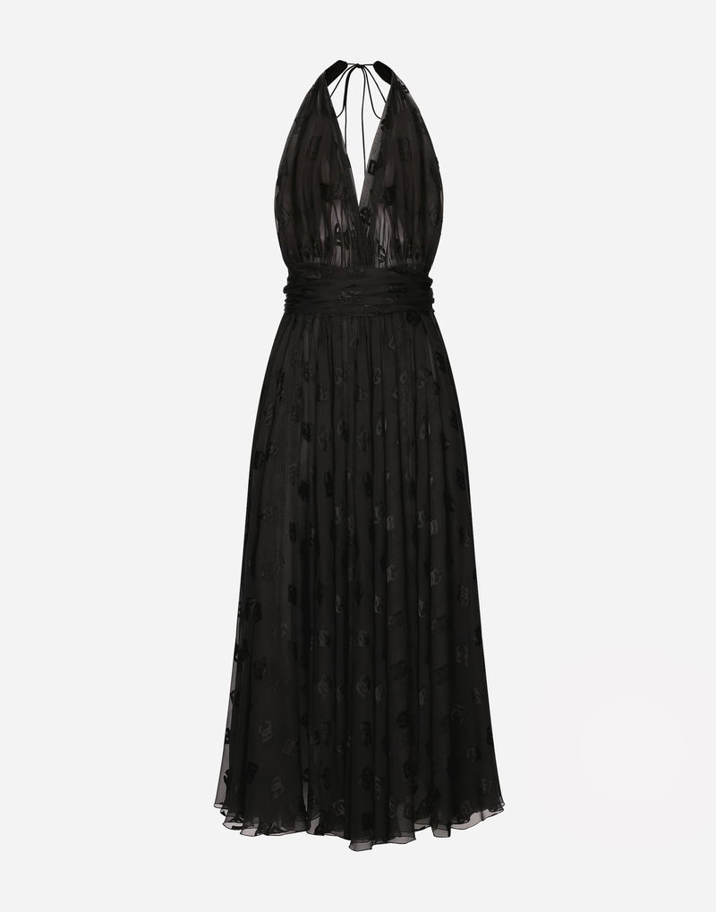 Dévoré Satin Calf-length Dress With All-over DG Logo