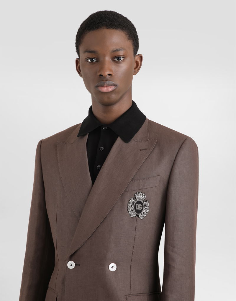 Double-breasted Linen Jacket With Patch