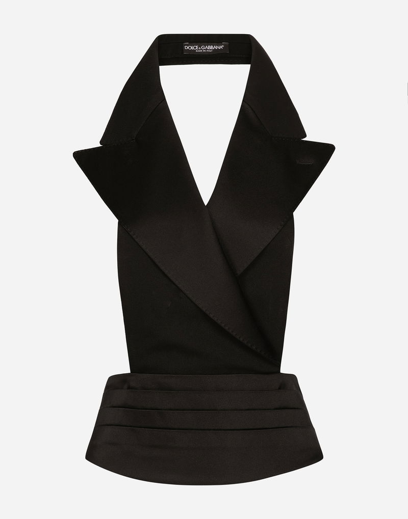 Double-breasted Silk Satin Vest With Low Neckline On The Back