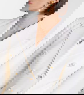 This Dolce&Gabbana double-breasted jacket will keep you warm and elegant during the cold season. The garment is crafted from a wool blend and flaunts a charming herringbone pattern.