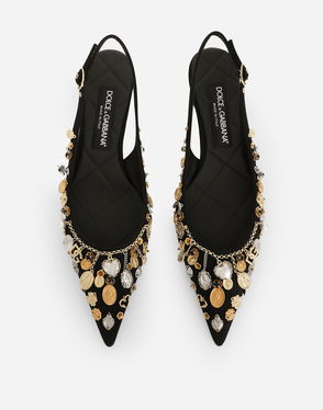These denim slingback pumps from Dolce&Gabbana blend bold embellishment with refined details. A standout piece of Italian craftsmanship, this piece features an intertwined DG logo, 60 mm heel, and a sharp pointed toe.