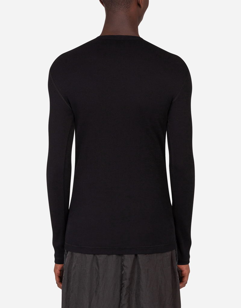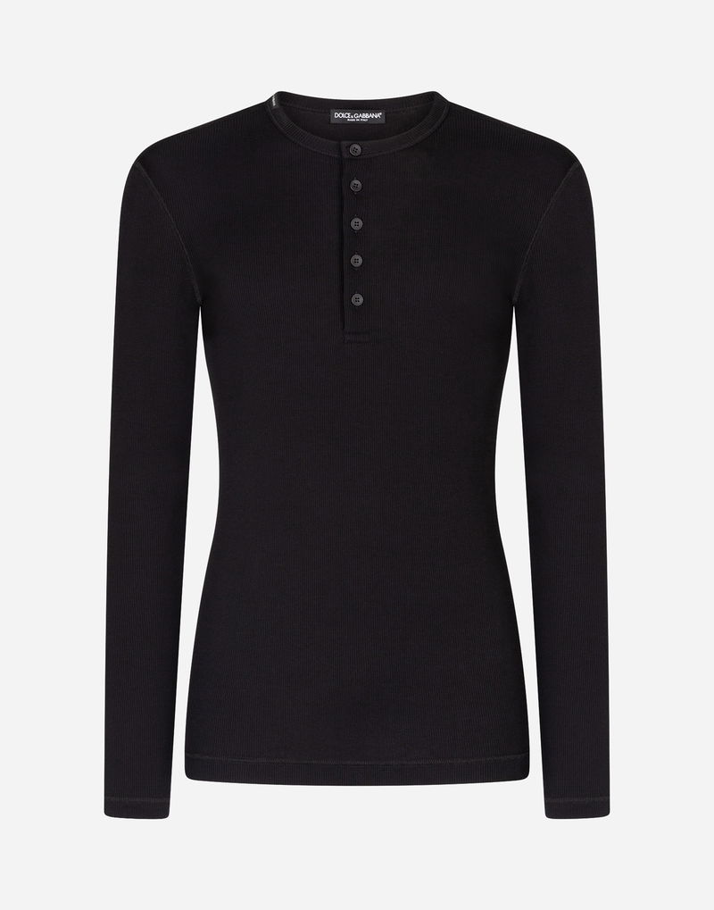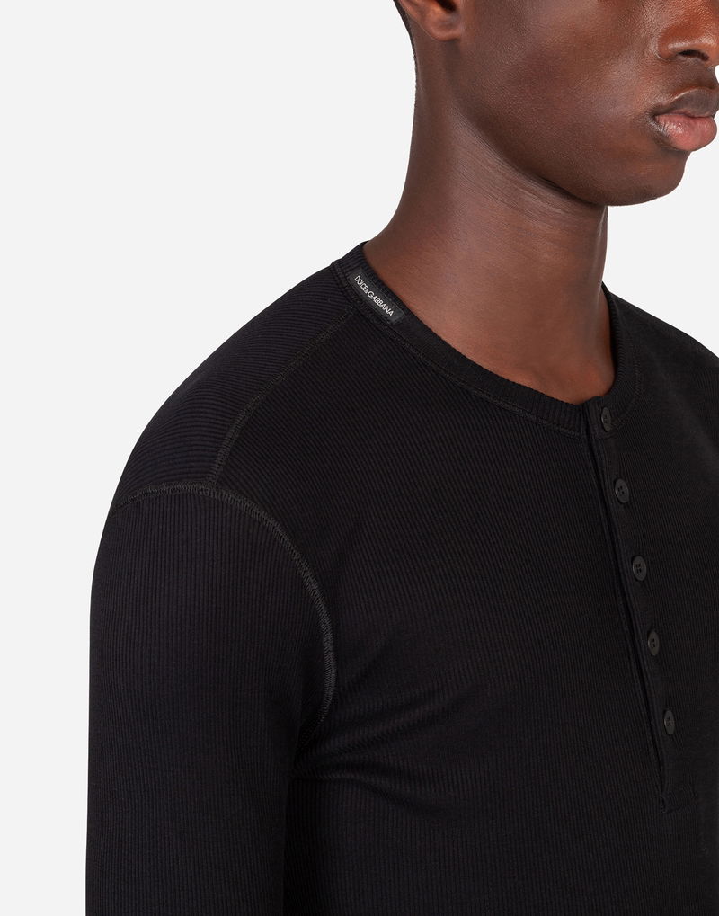 FINE-RIB COTTON GRANDDAD-NECK T-SHIRT WITH LONG SLEEVES