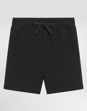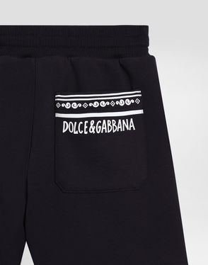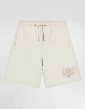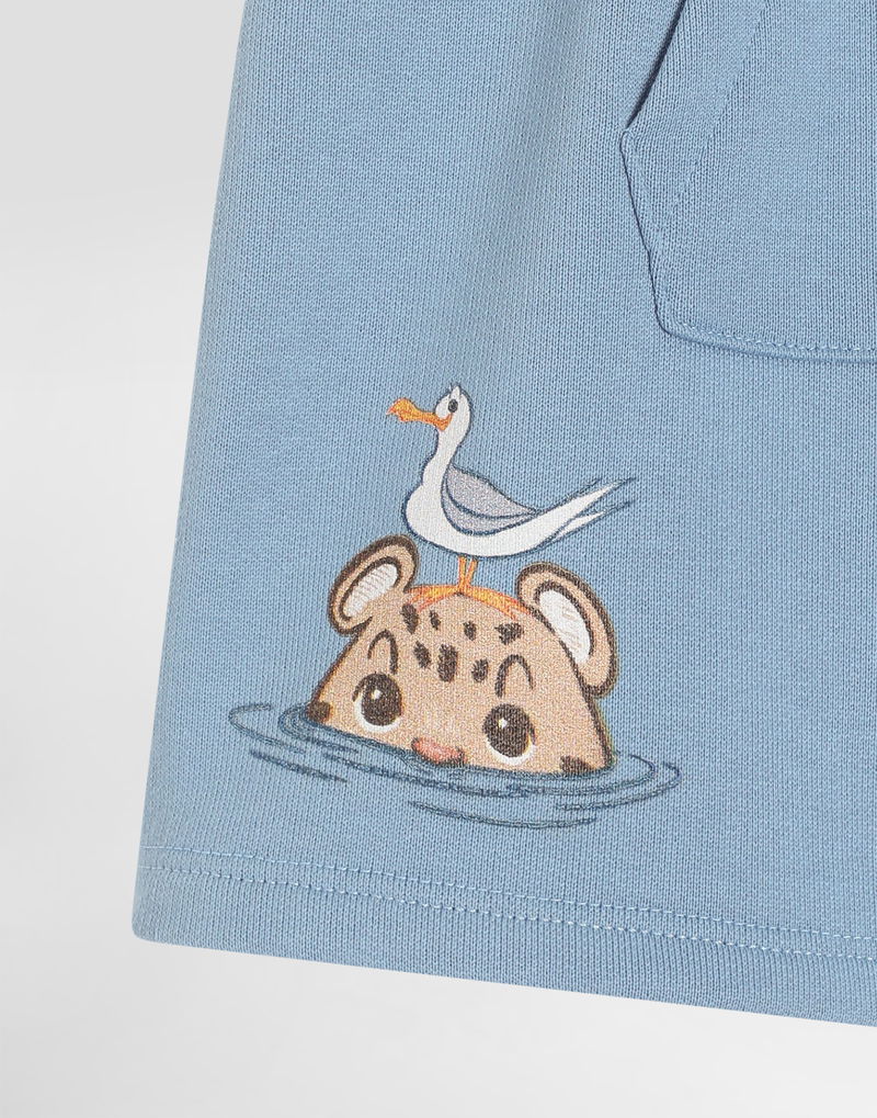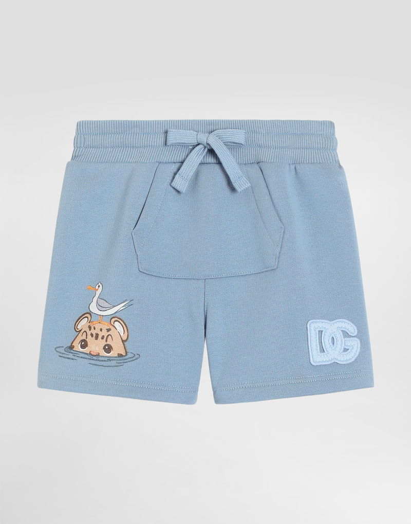 Fleece bermuda shorts with Leopard print and DG patch: Blue Oversized fit Kangaroo pocket Made in Italy
