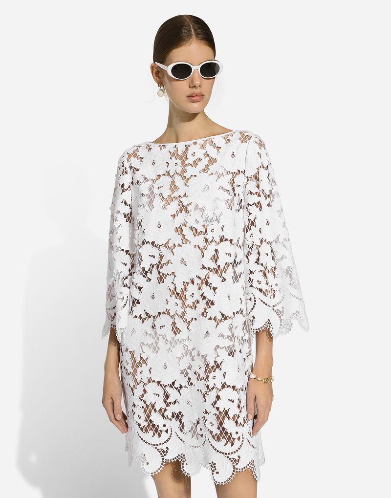 Floaty Short Cotton Dress With Floral Openwork Embroidery