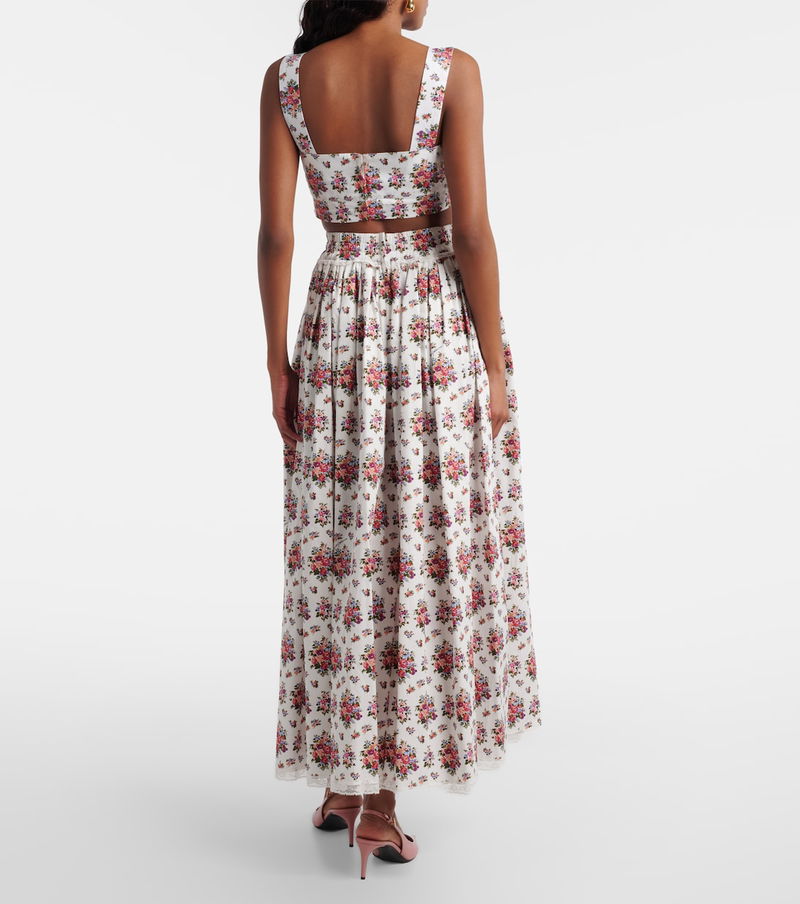 Floral Lace-trimmed Cotton Midi Skirt