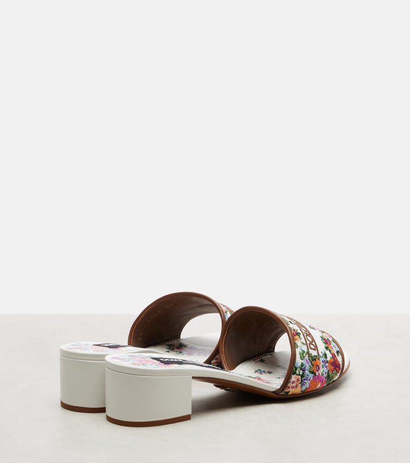 Floral Leather-trimmed Mules