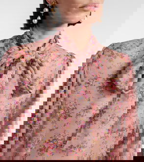 Floral Ruffled Sheer Silk Blouse