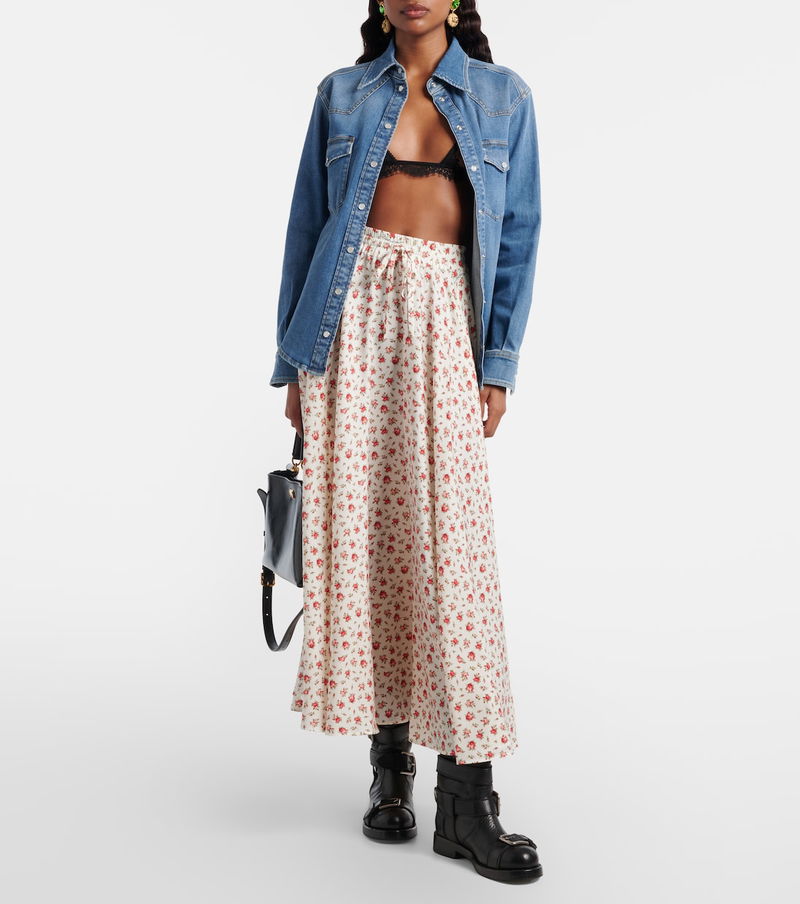 Floral Silk-blend Midi Skirt