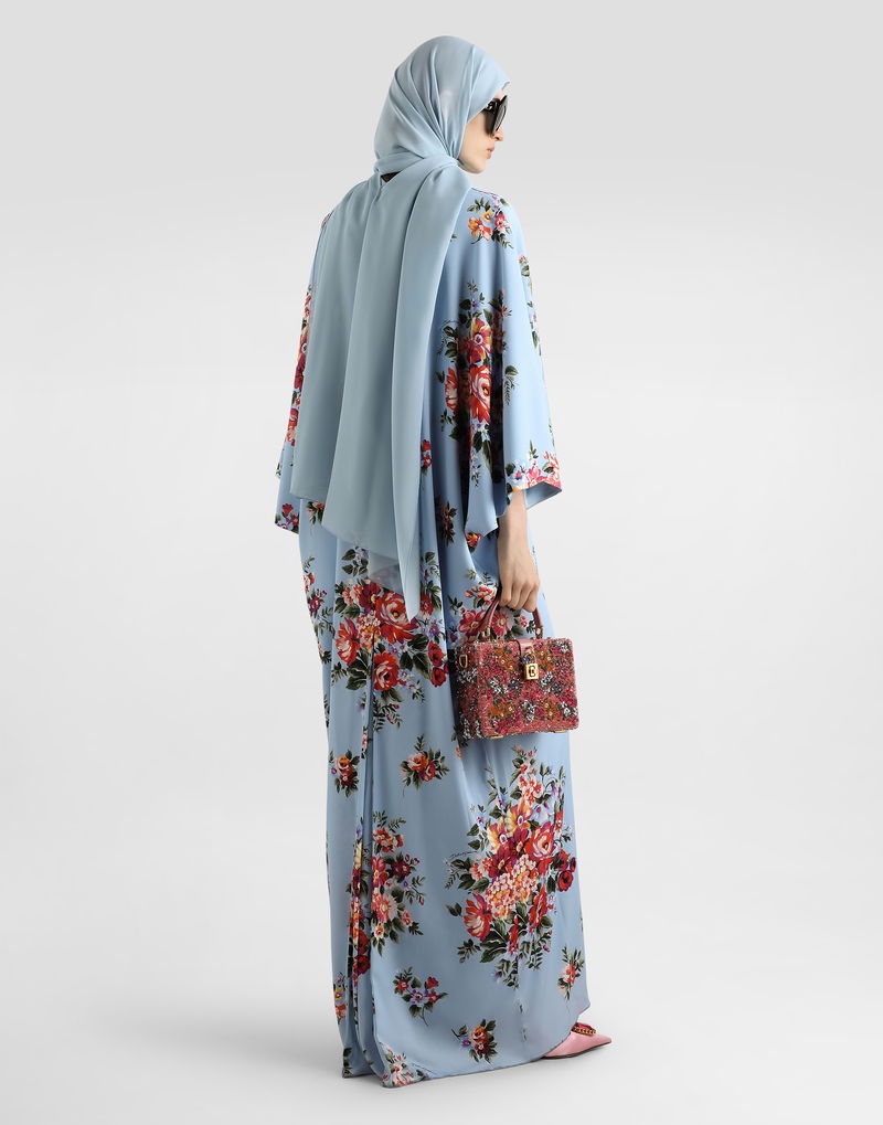 Flower Bouquet-print Long Charmeuse Dress