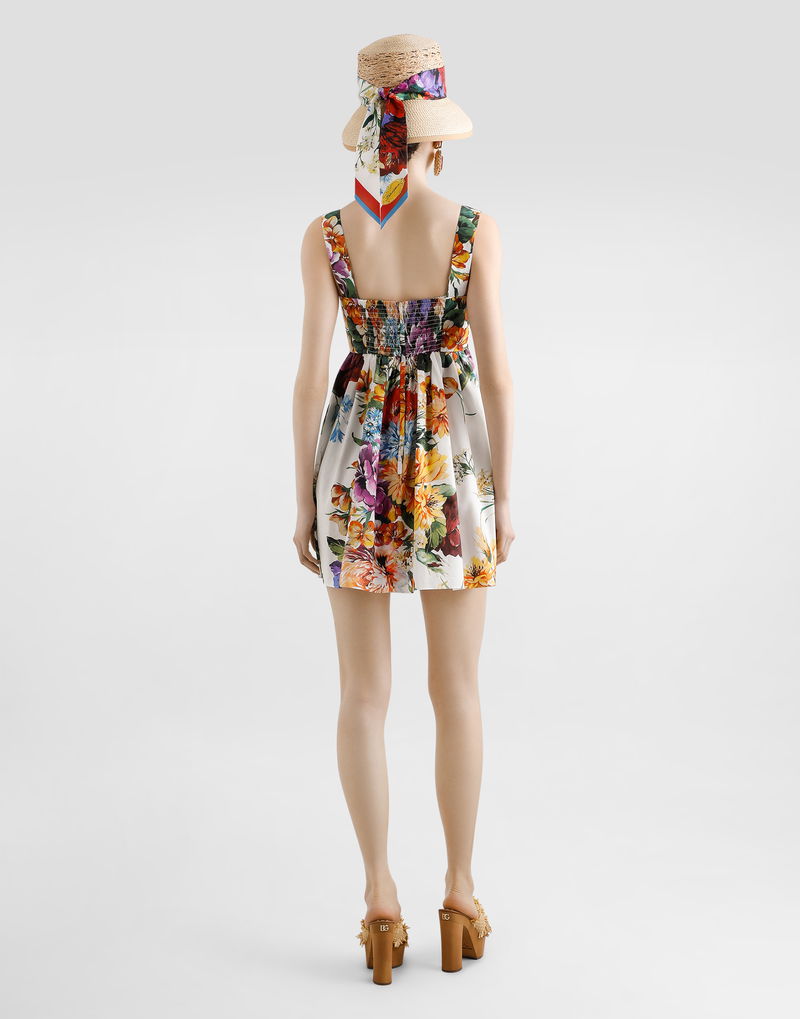 Flower Bouquet-print Poplin Dress